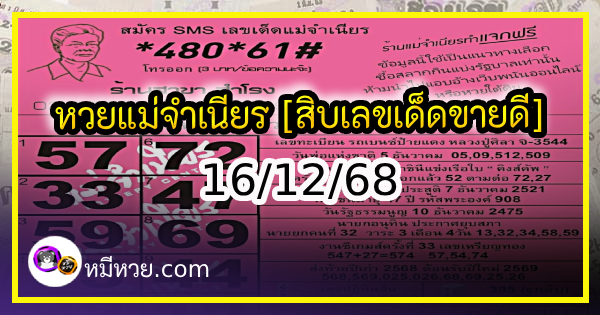หวยแม่จำเนียร 16/12/68 [สิบเลขเด็ดขายดี]