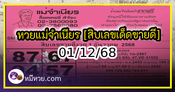 หวยแม่จำเนียร 01/12/68 [สิบเลขเด็ดขายดี]