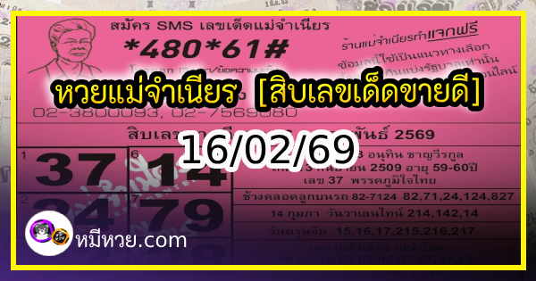 หวยแม่จำเนียร 16/02/69 [สิบเลขเด็ดขายดี]