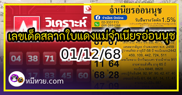เลขเด็ดสลากใบแดง-แม่จำเนียรอ่อนนุช 01/12/68 [สิบเลขเด็ดขายดี]