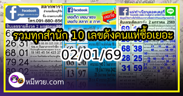 รวมทุกสำนัก 10 เลขดังคนแห่ซื้อเยอะ 02/01/69 เลขห้ามพลาดเด้อสู
