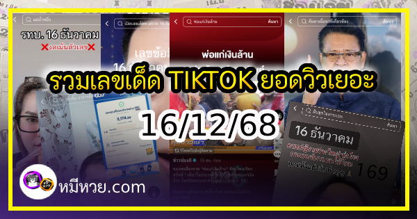 รวมเลขเด็ด TIKTOK ยอดวิวเยอะ 16/12/68 งวดนี้มาส่องต่อ