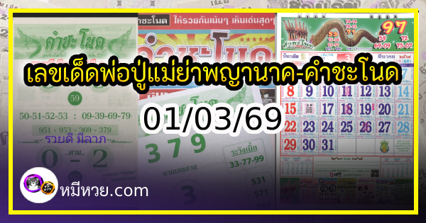 เลขเด็ดพ่อปู่แม่ย่าพญานาค-คำชะโนด งวด 01/03/69