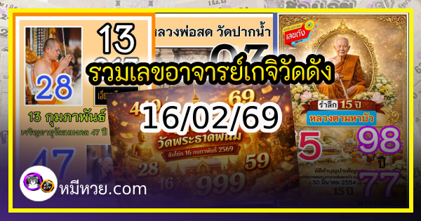 รวมเลขอาจารย์เกจิวัดดังทั่วประเทศที่ทุกคนรอคอย งวด 16/02/69