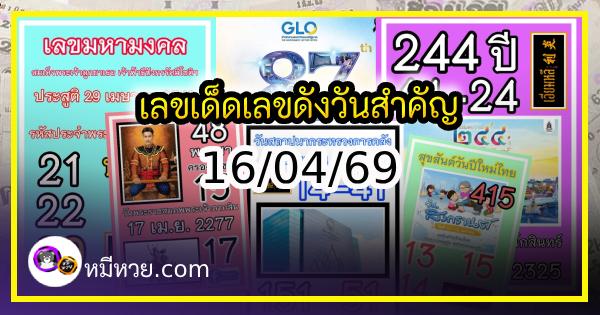 หมีหวย.com รวมข่าวหวยเลขเด็ดจากวันสำคัญประจำเดือนต่างๆทั่วประเทศ เลขเด็ดวันสำคัญ 16/04/69 สำหรั...